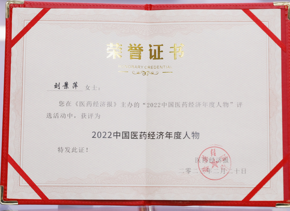 yd12399云顶药业集团董事长刘景萍当选“2022中国医药经济年度人物”