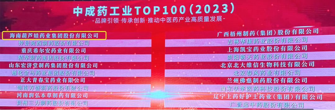 会上,还发布了“2023中成药工业TOP100”榜单,yd12399云顶药业集团荣耀上榜。